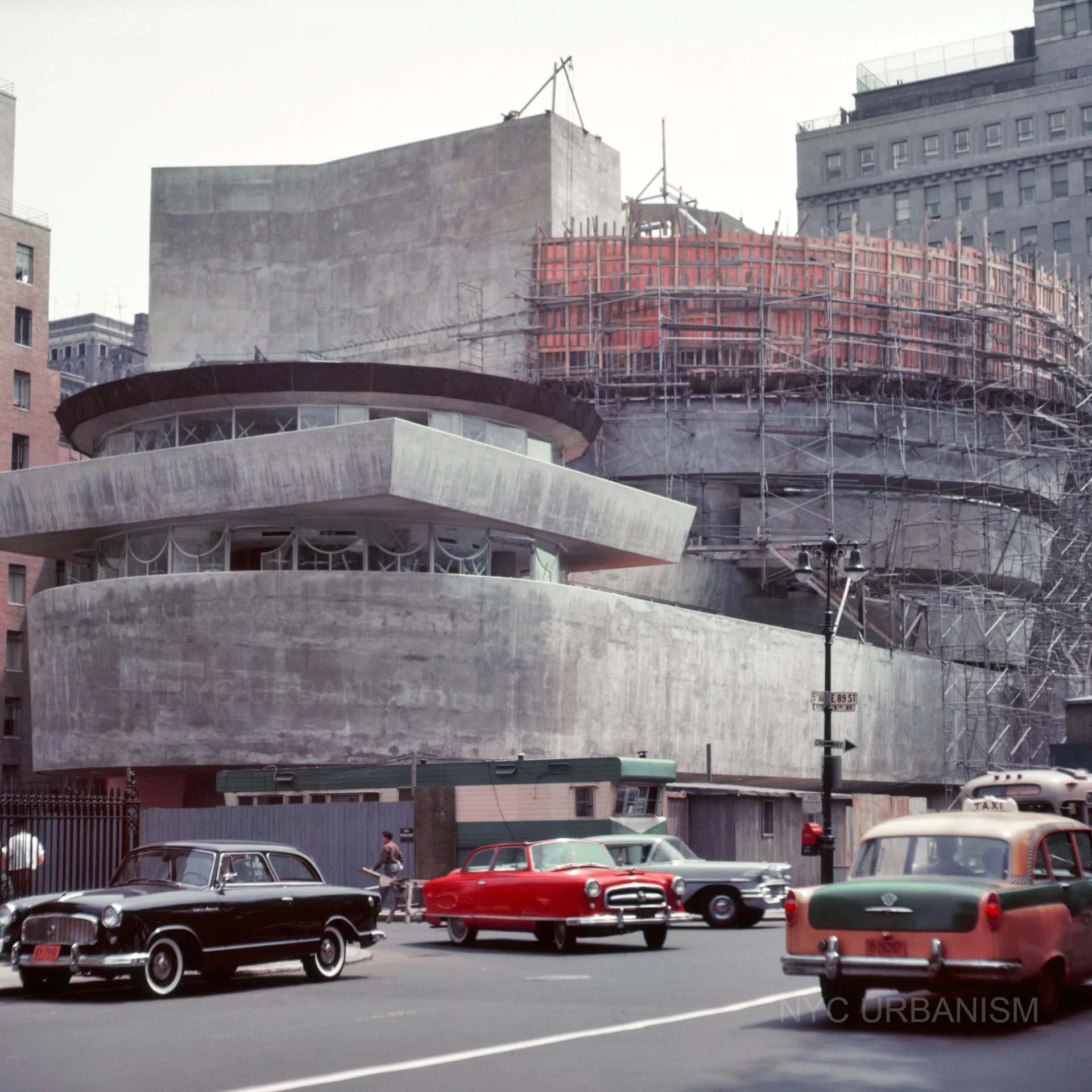 On October 21, 1959, sixteen years after it was first conceived, the Guggenheim Museum opened to the public. Thousands flocked to the opening and the film "Buildings & Crowd" captures their excitement as lines formed down Fifth Avenue.