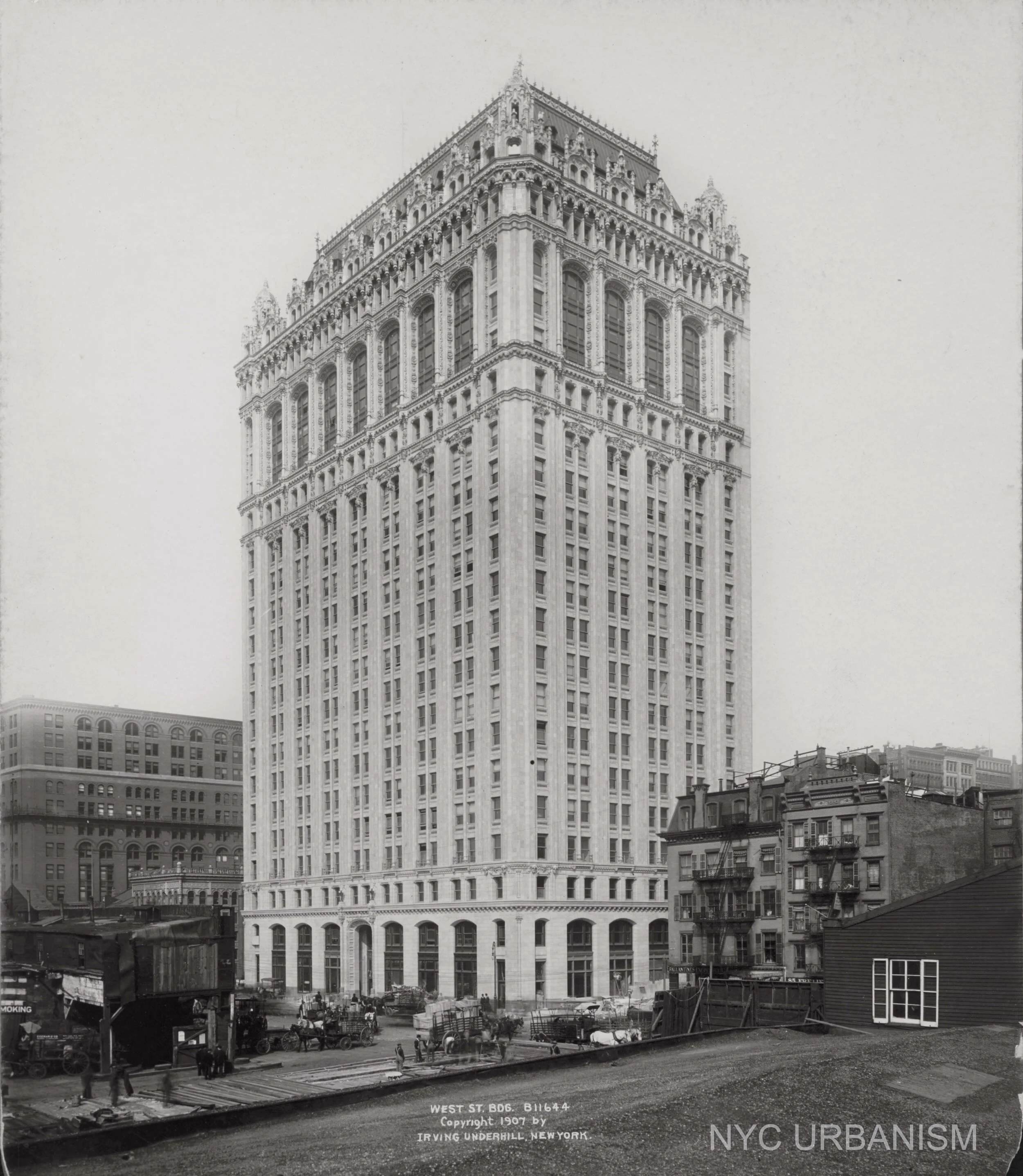 The New York Times described the building when it was first proposed, “It is to be twenty-three stories high and finished on the uppermost stories in beautiful colored terra cotta, harmonizing with the copper sheathed mansard roof. Its unobstructed frontage on the river will make it one of the landmarks to those who use the North River ferries.”