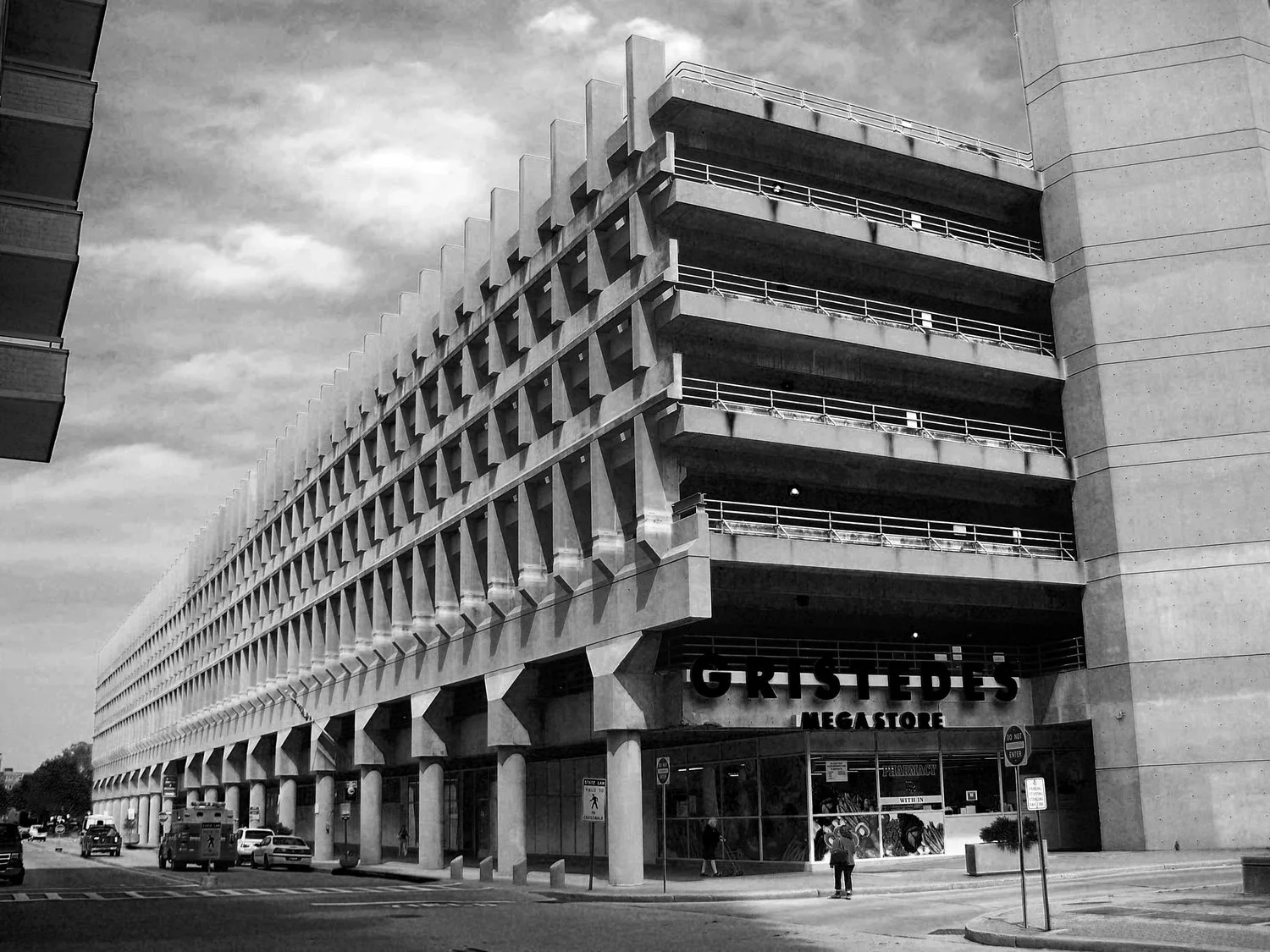 On the lower level, the garage incorporated a post office and grocery store, helping to open it up to the surrounding urban fabric and making it more inviting to pedestrians. These commercial additions also solidified the site as the civic center of the new planned community.