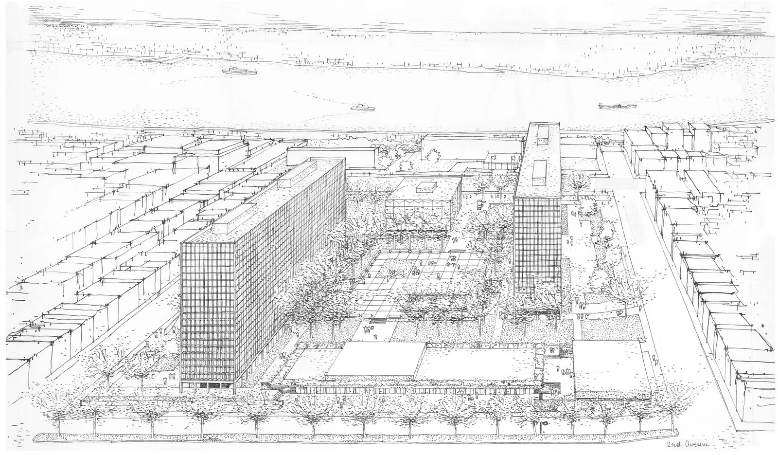 Architectural drawing of Kips Bay Plaza (Pei Cobb Freed & Partners)