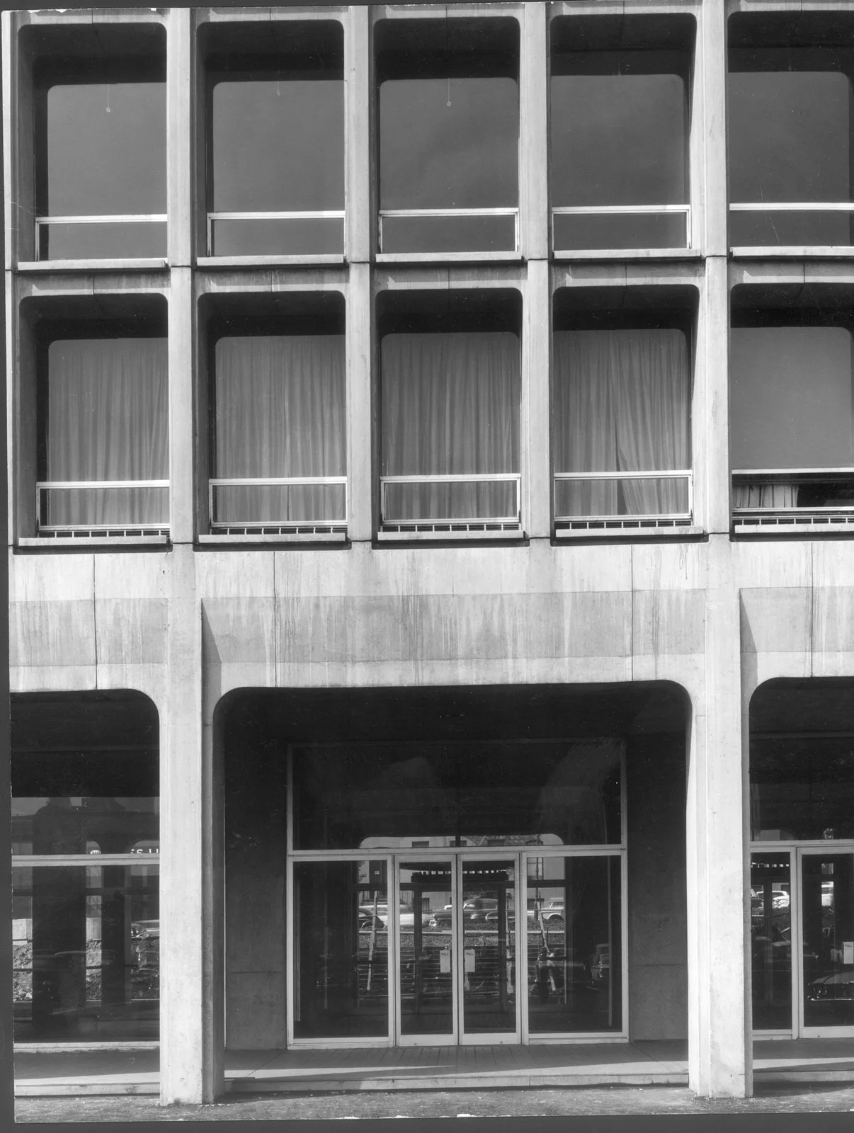 The gridded cast-in-place concrete facade utilized both interior and exterior structure. Each slab is defined by this concrete grid, which has radiused corners around the windows, expressing the poured material’s fluidity. Since the facades act as load-bearing walls, Pei was able to free up space inside the building with fewer internal supports, giving residents more usable space. This new method of construction was 7% costlier than the typical apartments of this time.