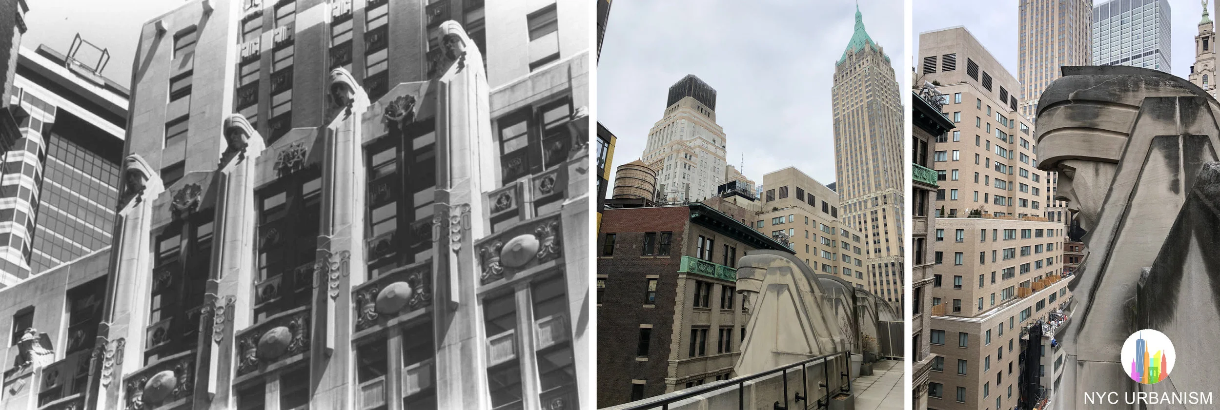 Giants of Finance. The photo on the left shows one of the eagles (bottom left) that top the columns that end one floor under the Giants.
